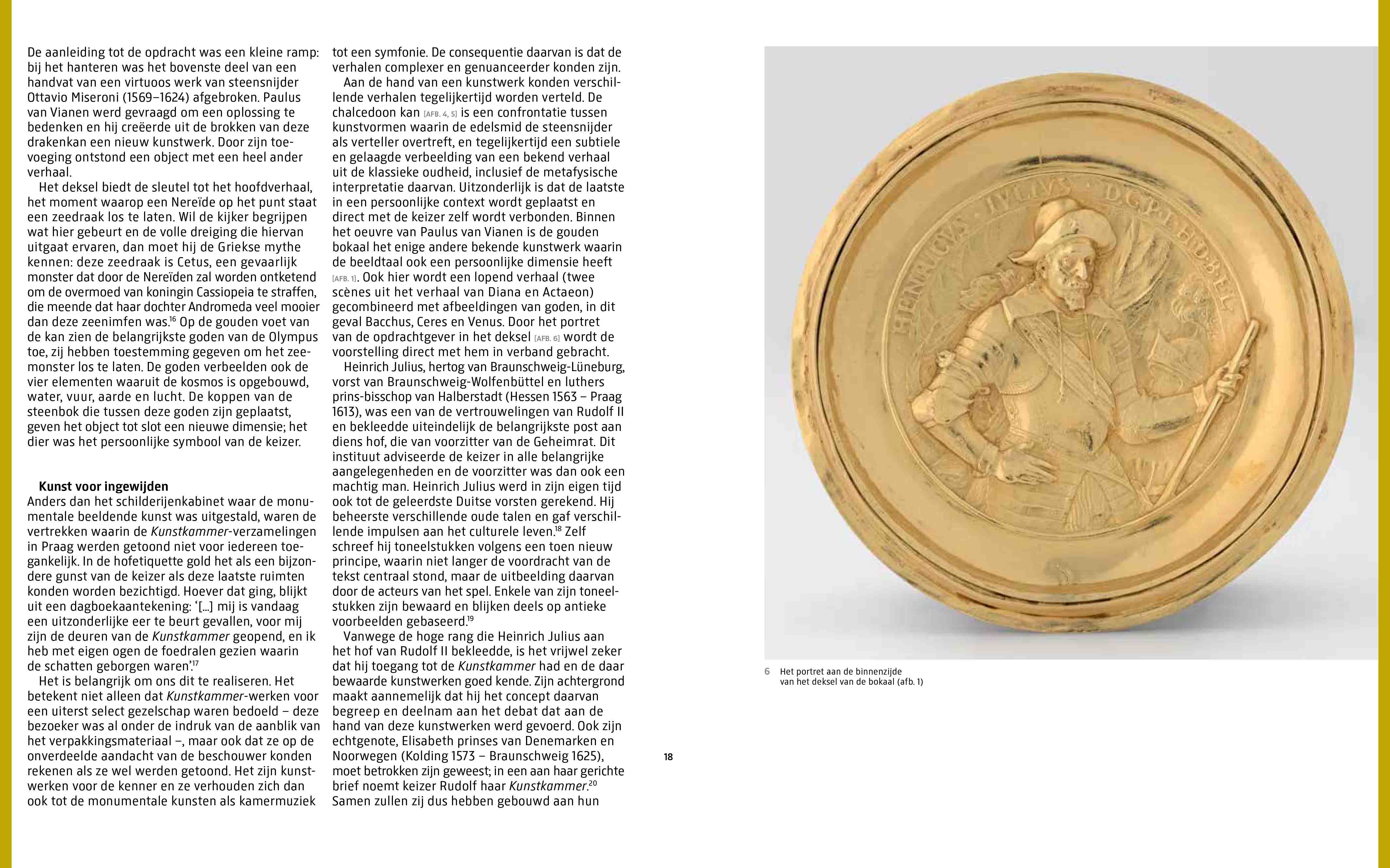 In deze publicatie plaatst Dirk Jan Biemond het kunstwerk voor het eerst in de internationale Kunstkammer-traditie van rond 1600. Hij laat zien welke mogelijkheden de virtuoze edelsmid gebruikte om verhalen in beeld te brengen en waarin deze verschilden van die van de schilder en de beeldhouwer. Zo wordt duidelijk waarom Paulus van Vianen al in zijn eigen tijd absolute sterrenstatus had.