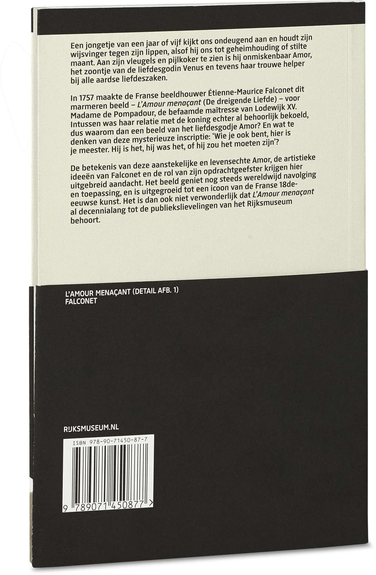 In 1757 maakte Falconet dit beeld van de liefdesgod Amor voor Madame de Pompadour, de maîtresse van Lodewijk XV. De Rijksmuseum Reeks is een toegankelijke manier om meer te weten over de belangrijkste kunstwerken en historische thema's in de collectie. De rijk geïllustreerde boekjes beschrijven een kunstwerk of thema en plaatsen het in breder (kunst)historisch kader. Ideaal voor wie meer wil weten van zijn favoriete kunstwerk in het Rijksmuseum, ook leuk als souvenir of cadeautje.