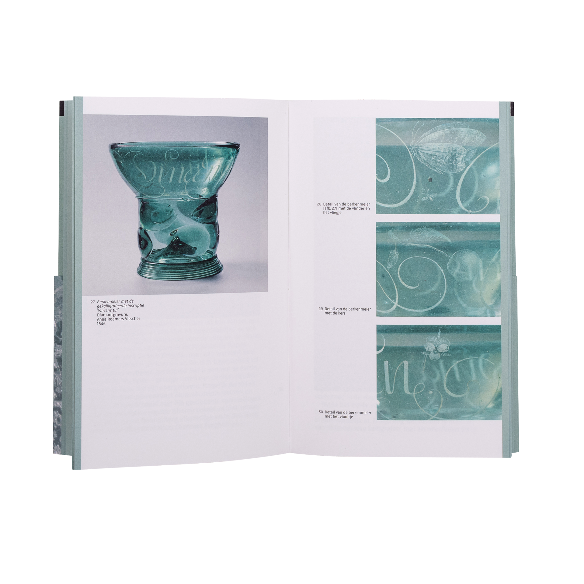 Voor dit uiterst kundige staaltje tekende Huygens ' goede vriendin Anna Roemers Visscher (1584-1652), die zich - uit liefhebberij - al vroeg met het graveren van glas ging bezighouden. Een aantal keren gebruikte ze voor de kalligrafie een van haar gedichten, een ander gebied waarop ze veel lof kreeg toegezwaaid, en dat voor vrouwen hoogst ongebruikelijk was. Wereldwijd zijn er nog slechts vijf glazen van Anna 's hand bekend, waarvan drie in het bezit zijn van het Rijksmuseum.