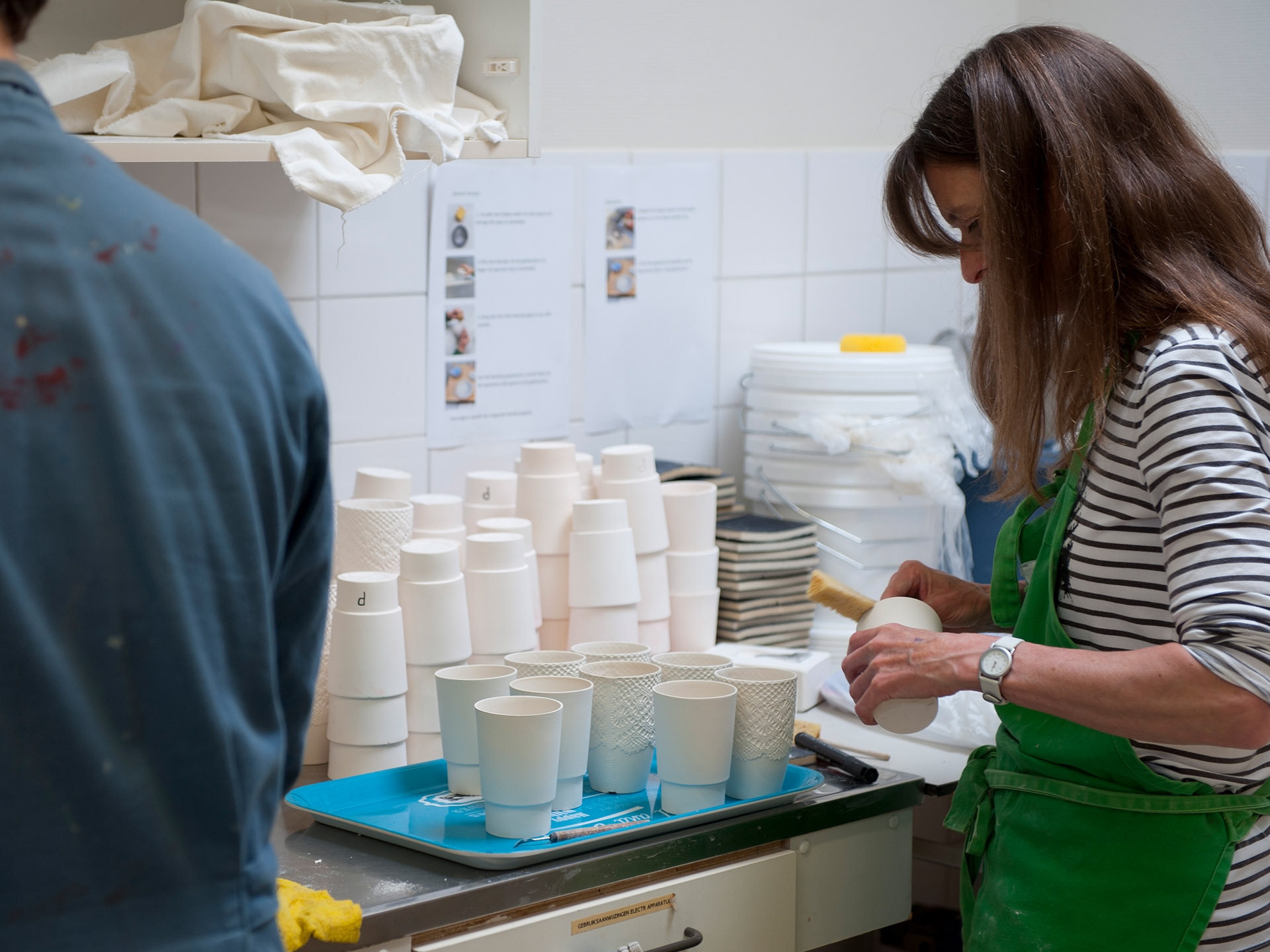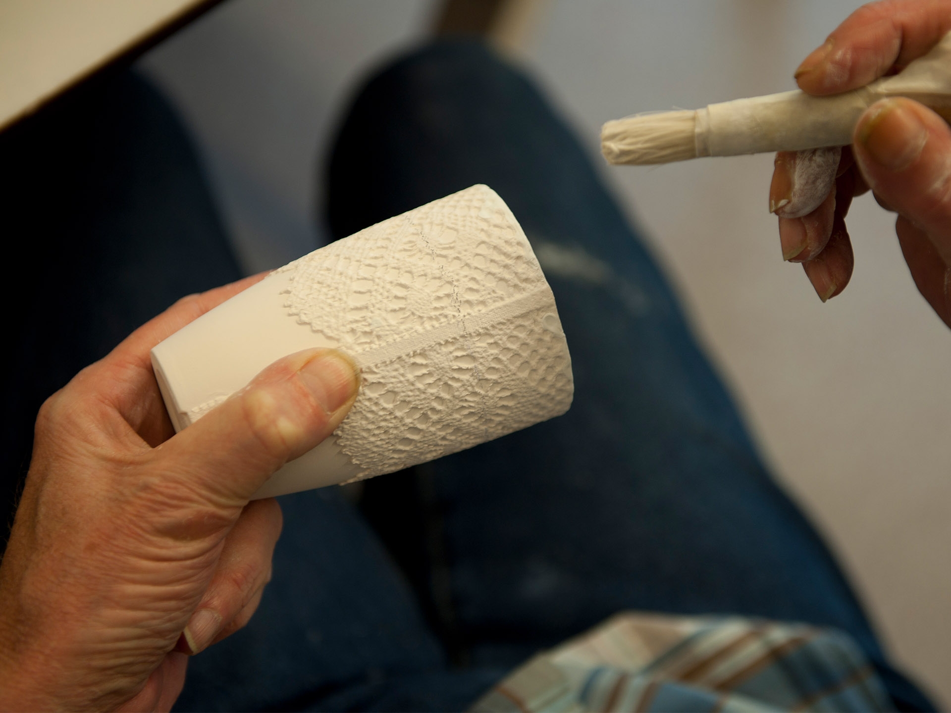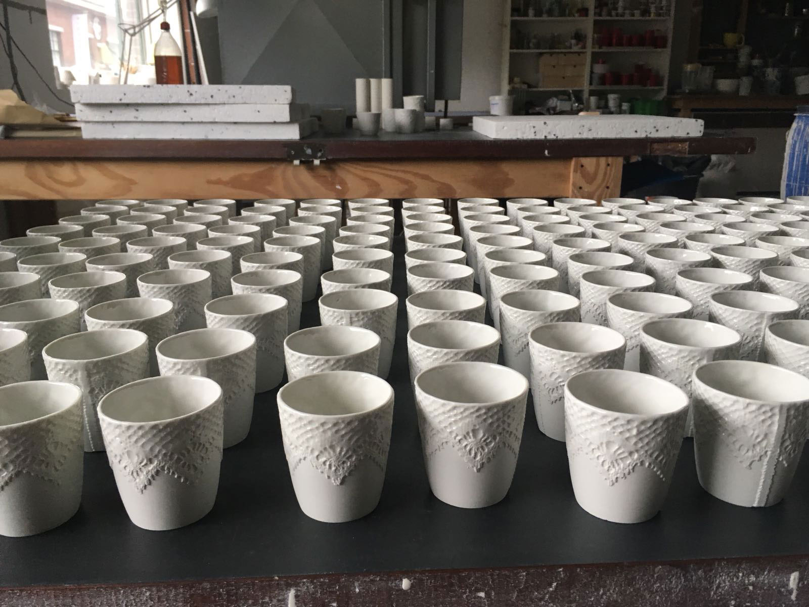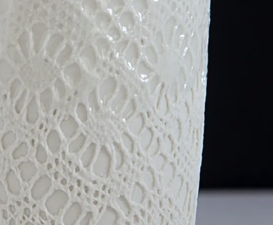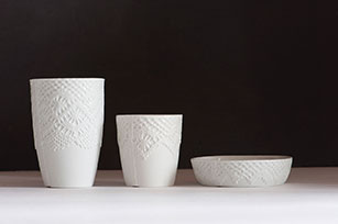Designer Sander Luske was inspired by the rich lace of Rembrandt's Marten & Oopjen. The pattern of this beautiful lace can be found on this espresso cup made of porcelain. What makes this cup special is that it is handmade by people distanced from the labour market within the Design X Craft project.