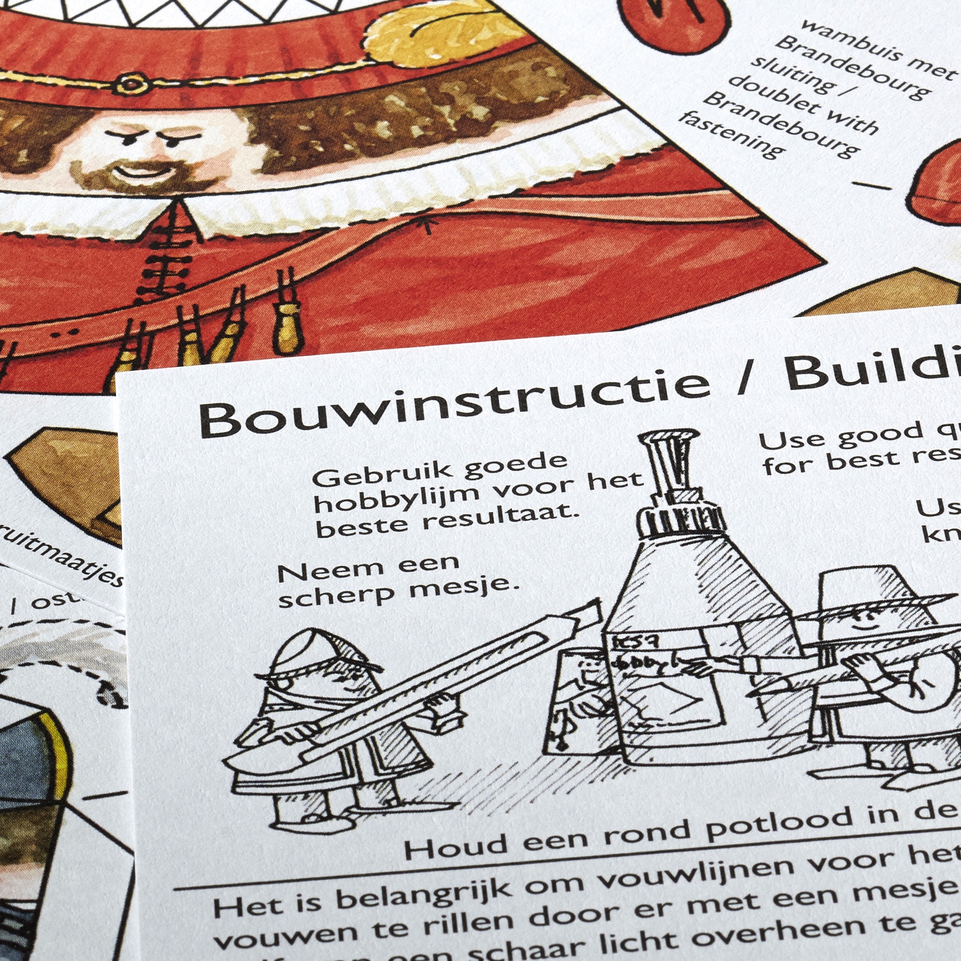 The packaging folder, folded inside out, forms the background and the building instructions are included.