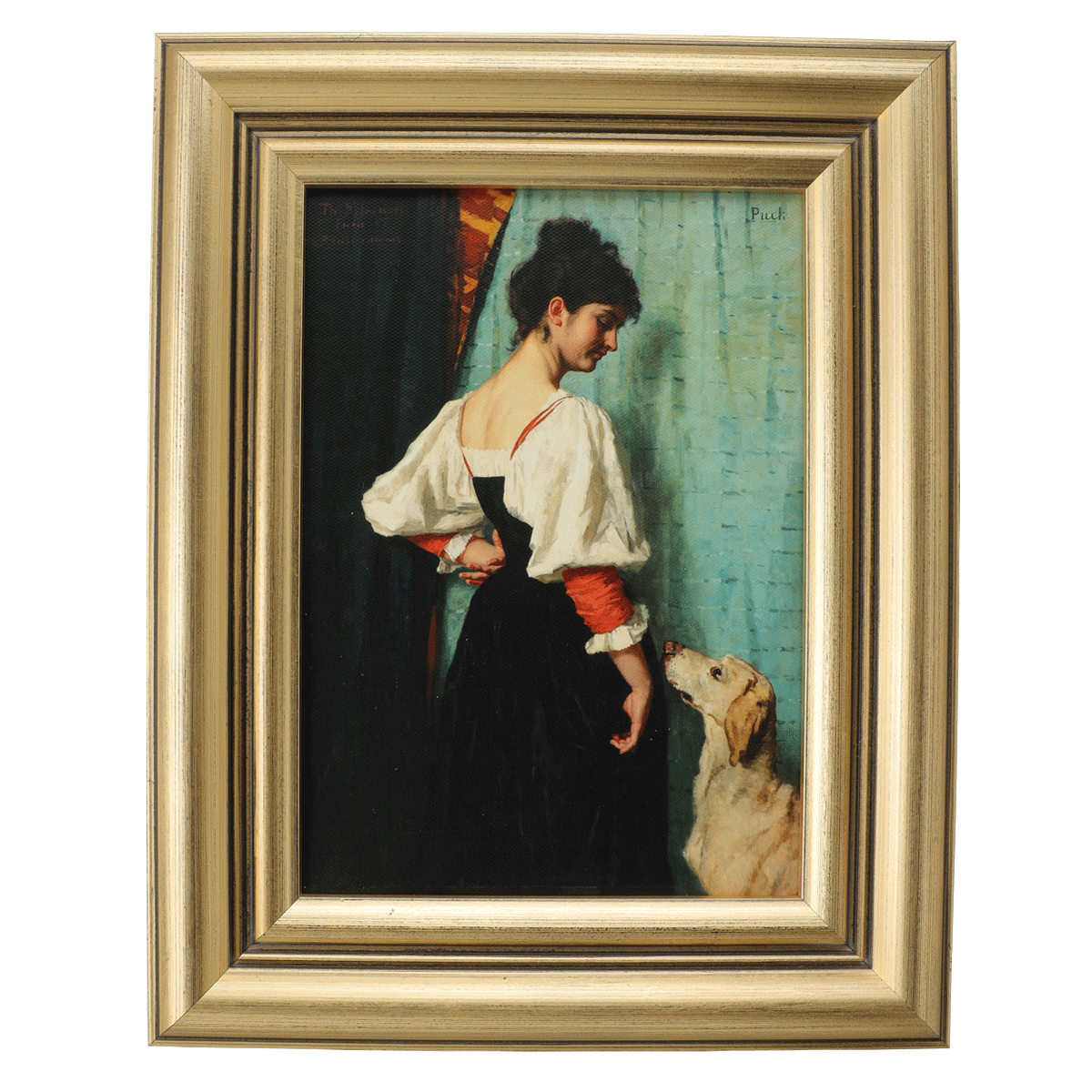 Poster: Jonge Italiaanse vrouw hond Puck,...