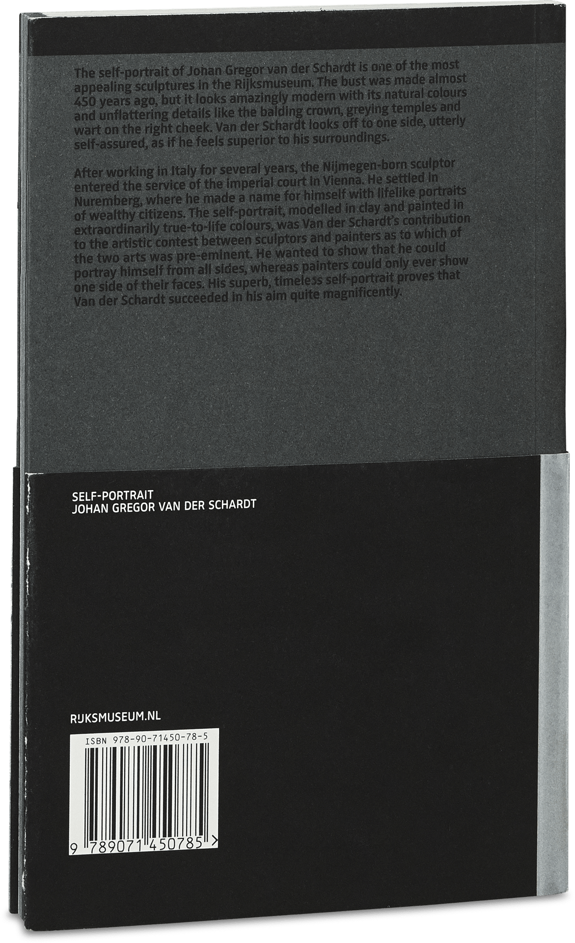 Het zelfportret van Johan Gregor van der Schardt is een van de aansprekendste beelden in het Rijksmuseum. De buste is bijna 450 jaar geleden gemaakt, maar doet heel modern aan, met zijn natuurlijke kleuren en ongeflatteerde details als de kalende kruin, grijzende slapen en een pukkel op de rechterwang. Van der Schardt kijkt opzij, zelfbewust, alsof hij zich superieur voelt aan zijn omgeving. De uit Nijmegen afkomstige beeldhouwer kwam na een periode in Italië te hebben gewerkt in dienst van het keizerlijk hof in Wenen. Hij vestigde zich in Neurenberg, waar hij naam maakte met natuurgetrouwe portretten van rijke burgers. Het zelfportret, gemodelleerd in klei en naderhand levensecht beschilderd, was Van der Schardts bijdrage aan de artistieke krachtmeting tussen beeldhouwers en schilders over welke kunst de hoogste was. Hij wilde laten zien dat hij zichzelf van álle kanten kon weergeven, terwijl schilders telkens maar één zijde van hun gelaat konden afbeelden. Zijn prachtige, tijdloze zelfportret bewijst dat Van der Schardt in deze opzet glansrijk slaagde. In deze uitgave in de Rijksmuseum Reeks vertelt auteur Frits Scholten het verhaal achter dit zelfportret.