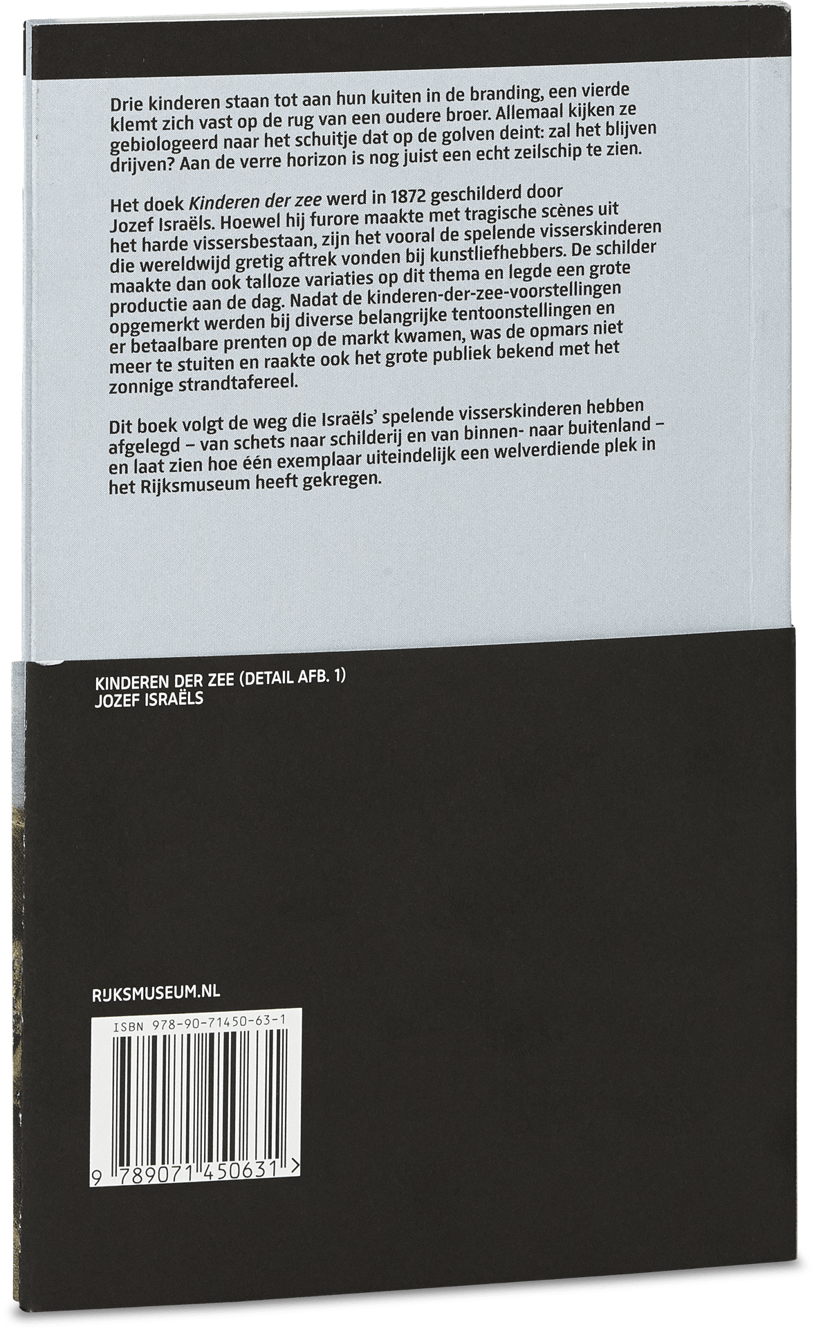 Drie kinderen staan tot aan hun kuiten in de branding, een vierde klemt zich vast op de rug van een oudere broer. Allemaal kijken ze gebiologeerd naar het schuitje dat op de golven deint: zal het blijven drijven? Aan de verre horizon is nog juist een echt zeilschip te zien. Het doek Kinderen der zee werd in 1872 geschilderd door Jozef Israëls. Hoewel hij furore maakte met tragische scènes uit het harde vissersbestaan, zijn het vooral de spelende visserskinderen die wereldwijd gretig aftrek vonden bij kunstliefhebbers. De schilder maakte dan ook talloze variaties op dit thema en legde een grote productie aan de dag. Nadat de kinderen-der-zee-voorstellingen opgemerkt werden bij diverse belangrijke tentoonstellingen en er betaalbare prenten op de markt kwamen, was de opmars niet meer te stuiten en raakte ook het grote publiek bekend met het zonnige strandtafereel. In deze uitgave in de Rijksmuseum Reeks volgt auteur Diewertje Dekker de weg die Israëls’ spelende visserskinderen hebben afgelegd – van schets naar schilderij en van binnen- naar buitenland – en laat zien hoe één exemplaar uiteindelijk een welverdiende plek in het Rijksmuseum heeft gekregen.