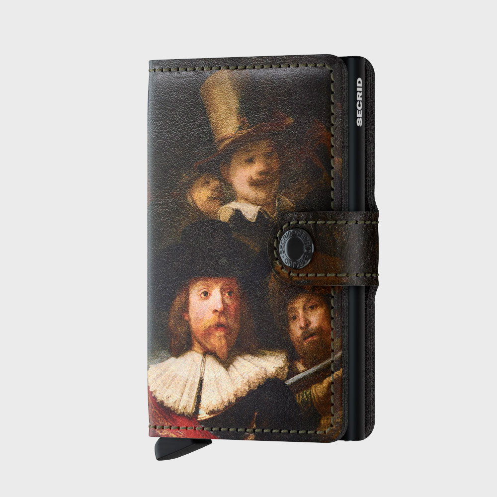 Secrid heeft een collectie wallets ontworpen geïnspireerd op Nederlandse meesterwerken uit het Rijksmuseum in Amsterdam. In zijn grootste en beroemdste schilderij maakt Rembrandt meesterlijk gebruik van clair-obscur, het contrast tussen lichten donker, om de aandacht te vestigen op bepaalde details. De bijnaam Nachtwacht stamt uit de 18e eeuw, toen men dacht dat het schilderij een nachtelijke scène voorstelde. De donkere tinten en lichte details van de Nachtwacht maken deze wallet subtiel en spectaculair tegelijk.