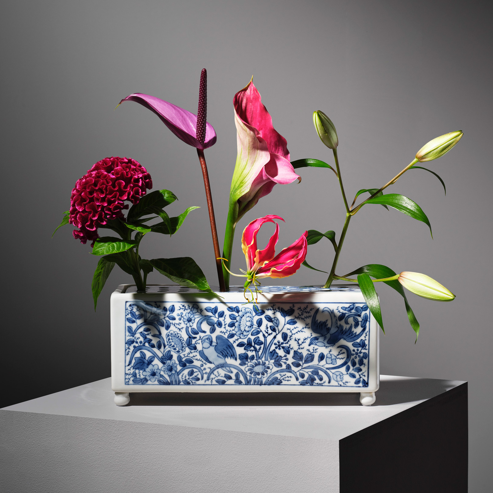 Als pronkstuk of gebruiksvoorwerp, deze vaas heeft het allemaal. Handgemaakt met vakmanschap en vervaardigd met zorg uit fijn porselein. Geïnspireerd op de Bloemenhouder, Faience stijl gemaakt in Aardewerk ‘De Grieksche A’, Delft 1690-1700. De vaas heeft 17e-eeuwse Delfts-blauwe versieringen. Iedere vaas is uniek; door het handwerk kunnen er kleine imperfecties aanwezig zijn.