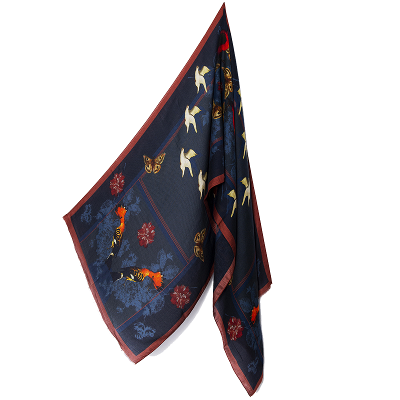 Exclusief ontworpen sjaal door Hellen van Berkel voor het Rijksmuseum. Materiaalsamenstelling: kasjmier en modal.