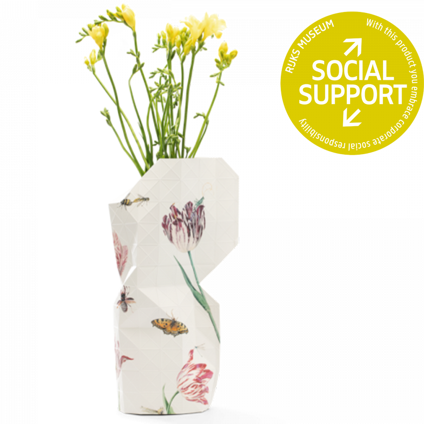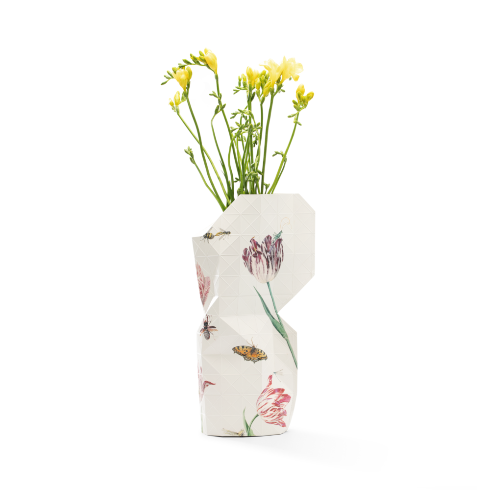 Fleur je interieur op met deze papieren vouwvaas, geïnspireerd op het werk van Jacob Marrel. De vouwvaas is waterafstotend en gaat hierdoor lang mee. De Nederlandse ontwerper Pepe Heykoop won er in 2013 de Interior Innovation Award mee op de internationale meubelbeurs in Keulen.