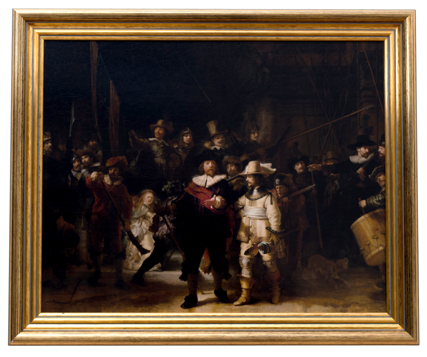 Altijd al een van de meesterwerken uit het Rijksmuseum in huis willen hebben? Met deze extra grote oleografie van De Nachtwacht komt het wel heel dicht in de buurt. De met de hand afgewerkte drukken zijn aangebracht op echt canvas en hebben een fraai craquelé. De reproducties zijn ingelijst in een goudkleurige houten lijst en voorzien van een ophangsysteem.