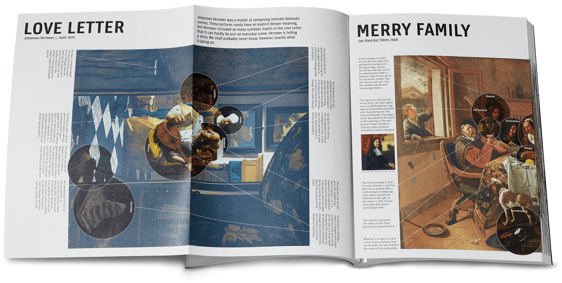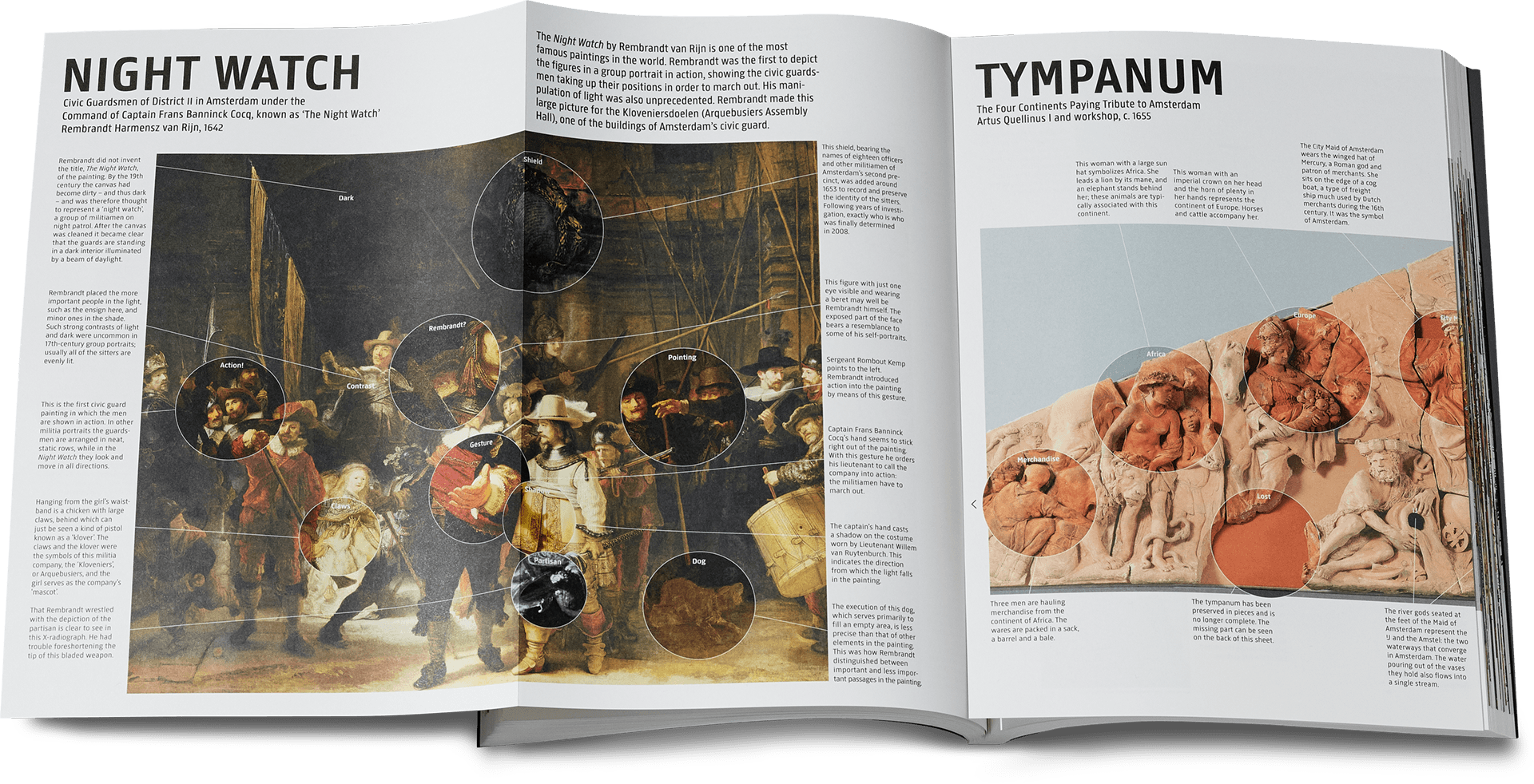 Vijftig uitvouwbladen, prachtig ontworpen door Irma Boom, zoomen in op hoogtepunten van het Rijksmuseum. Uitgelichte details en overzichtelijke tekstjes behandelen allerlei aspecten van de collectie - van symboliek, techniek, stijl en materiaal tot de historische context. Niet alleen is dit boek een feest voor het oog, je steekt er ook nog wat van op!
